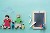 Couple en sablé et pâte d'amande, avec des playmobil et une ardoise