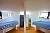 Les cabines blanc et bleu respectent l’esprit marin. L’échelle permet aussi de gagner de la place.