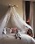 Ciel de lit en organdi blanc suspendu à une branche de bois flotté et semé d'étoiles