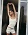 Jeune femme s'étirant; elle est vêtue d'un boxer en coton et d'un tee-shirt stretch