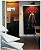 LA SALLE DE BAINS VUE DU SALON Dans 3 m2 carrelés de gris et au sol tendu de caoutchouc noir, la salle de bains regroupe la douche (à droite), un lavabo (au centre) et les toilettes surmontées d'un placard (à gauche). Un long miroir dessine une bande de lumière sur le mur. En dessous, une tringle à rideaux sert de porte-serviettes. Deux tabourets gris “Bubu 1er” (Philippe Starck pour XO design) servent à ranger le linge ; les soirs de dîner, on s'en sert pour s'asseoir autour de la table.