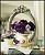 Bols anciens superposés dont le plus élevé accueille des bouquets de violettes.