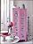 Des motifs de tasses et de théières, peintes sur du papier kraft avant d'être découpés, ont été collés sur les portes d'une armoire peinte en rose
