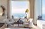 Peu de meubles pour ne pas obstruer la vue, mais des pièces de choix. Au mur, une oeuvre intitulée “Vega” de l’artiste Lyndia Benglis. Lampe “Zorzi” de Vincent Collin (Future Perfect). À gauche, fauteuil vintage de Karpen of California, à droite fauteuil “Anton” du studio Van den Akker.