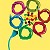 6 fils d'ordinateurs multicolores sont enroulés et disposés en cercle. Au centre, des bonbons.