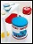 Housse de tabouret en trompe l'œil représentant un pot de yaourt