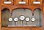 La cuisine de la chambre d'hôtes d'hôtes "La Maison du Figuier" à Bois-Plage-En-Ré: série d'horloges nichée sur une étagère d'un meuble de pharmacie