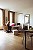 Salon d'un appartement, avec une femme assise dans un fauteuil