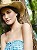 portrait d'une femme appuyée contre un arbre. Top, New Look, Chapeau, Vintage. (photo de beauté)