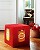 La housse de toile rouge d'un pouf quiltée d’écru appliqué de motifs de pots de confiture en transfert