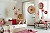 Salon décoré de cocardes réalisées avec des partitions de musique collées sur du papier rouge