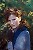 Plan rapproché d'une femme aux cheveux frisés et roux et au visage légèrement maquillé
