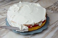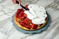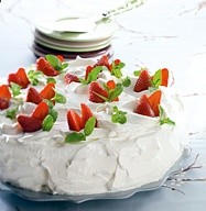 Grand gateau de fraises à la crème.